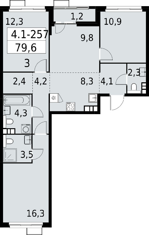 Общая: 79,6 м2